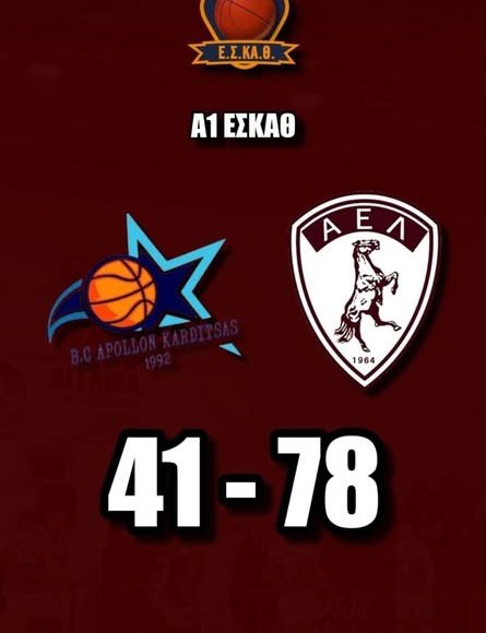 Νίκη εκτός έδρας. Με εκτός έδρας νίκη προχώρησε η ανδρική ομάδα της ΑΕΛ για το πρωτάθλημα της Α1 ΕΣΚΑΘ . Η ομάδα μας επικράτησε του Απόλλωνα Καρδίτσας με 41-78 παρουσία πλήθους κόσμου της ομάδας μας. Συνεχίζουμε δυναμικά. #morr_than_a_team #more_than_a_gameRead More